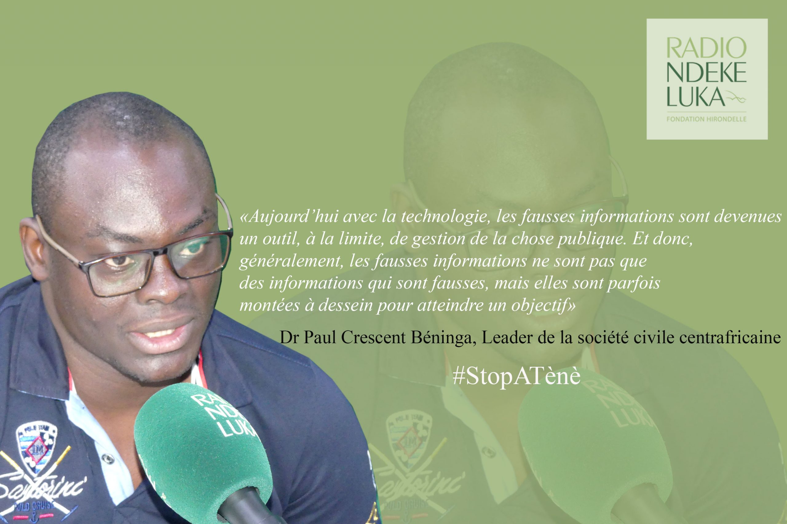 Dans un pays en conflit ou post conflit, la désinformation reste une arme décisive permettant de tromper l’opinion publique ou de détourner son attention sur un sujet d’importance capitale. Dans le cas d’espèce, la République centrafricaine en est une illustration. Beaucoup de fausses informations ont été fabriquées dans le but de manipuler, diviser ou tromper. Paul Crescent Beninga, docteur en science politique et activiste de la société civile, partage ses expériences sur la désinformation avec la cellule #StopATènè.