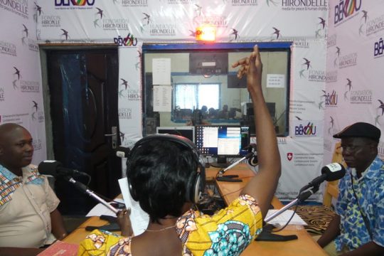 Les responsables de l'Unité Mixte d'Interventions Rapides et de Répressions (UMIRR), unité de police judiciaire à compétence nationale, entretiennent effectivement un rapport de collaboration avec le Procureur de la République, directeur de la police judiciaire. En cas de difficulté, ils obtiennent du Procureur de la République des orientations. Table ronde réalisée dans le cadre des 16 jours d'activisme. Magistrat Benoît Narcisse Foukpio, avocat général près la Cour d'Appel de Bangui et Commandant Paul Amédée Moyénzo, directeur de l'UMIRR apportent les